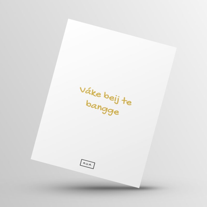 Een Sallandse uitspraak in het 'goud': leef nu je kan! Een mooie ansichtkaart met tekst in het Sallands om iemand te bemoedigen. Deze kaart zal ook goed in huis staan in een houten kaartenhouder van Op de kaart.